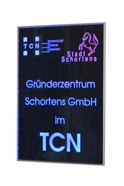 | NML-Solutions design and produce illuminated Plexiglass signs for advertising and information purposes. The illumination is caused by a combination of a special adhesive film attached to a diamond polished plexiglass sheet that is illuminated by a set of coloured LEDīs. The LEDīs are housed in an aluminium rail attached to the base.
